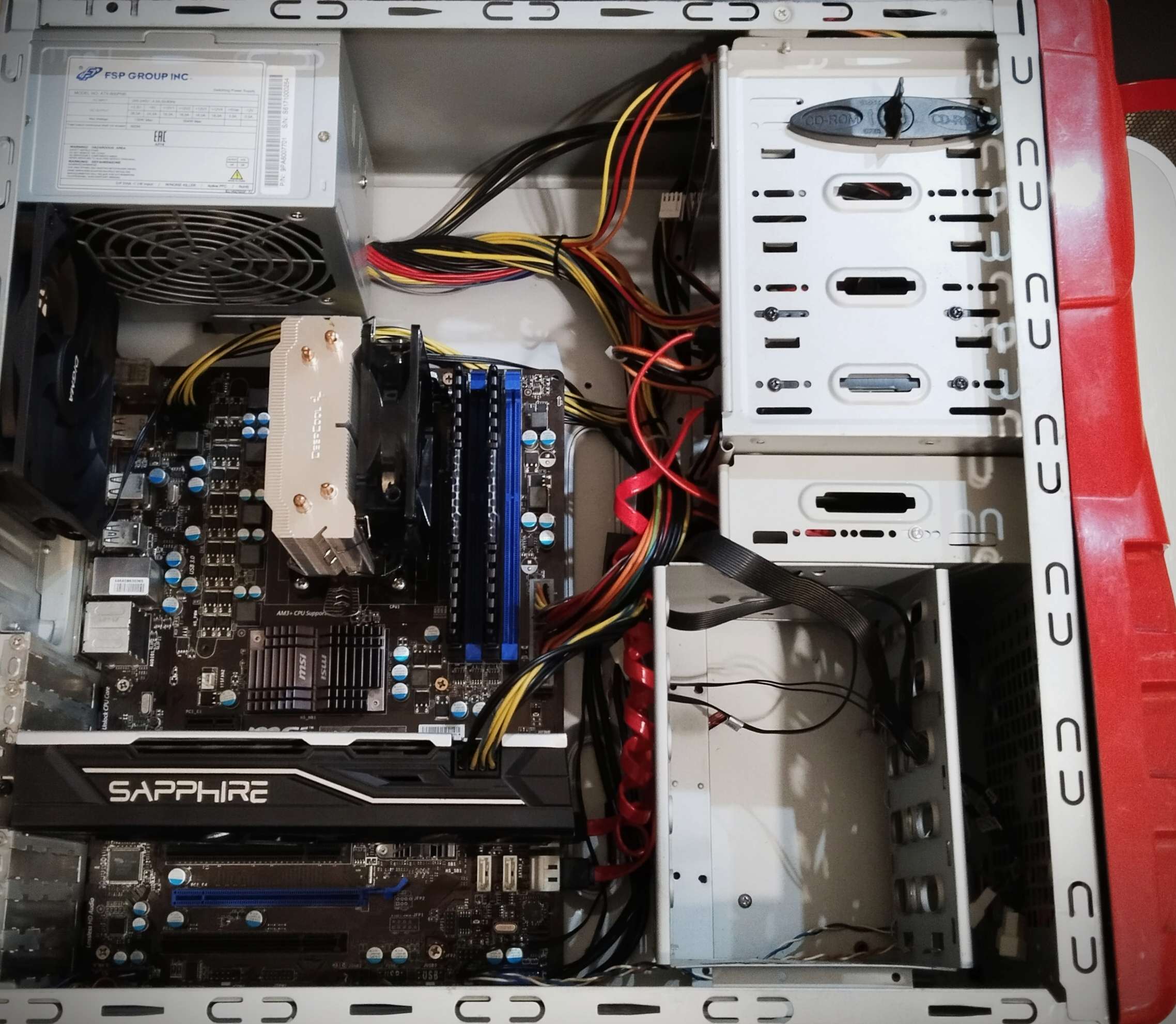 Продаю системный блок на базе 8-ми ядерного процессора FX 8320 и игровой видеокарты Radeon RX 470 Nitro 8Gb В отличном техническом состоянии и оригинальным внешним видом. Характеристики: • Процессор: FХ-8320 8 ядер (АМ3+, 3,5Ghz ~ 4,0Ghz ТURВО, 8Мb+8Мb L2+L3 сасhе, DDR3-1866Мhz •Материнская плата: MSI 970A-G43 •Оперативная память: Corsair Vengeanse DDR3 8gb, 2x4, 1600Mhz •Видеокарта: Sapphire Radeon RX470 Nitro, 8Gb GDDR5 (Hynix), 256bit , частота GP 1366Mhz, память 2000 Mhz •Накопители: SSD: A-data 240Gb HDD: WD 1000Gb, 2,5' •Блок питания: FSP ATX 600PNR 600W •Картридер •Привод DVD-RW •Корпус: AEROCOOL V12 •Блок управления вентиляторами •Сенсорный LCD-дисплей •Датчики температуры (Экран в заводской пленке) Охлаждение: •220 мм на боковой панели c фильтром, с возможностью регулировки оборотов на боковой крышке корпуса •120 мм Digma, на задней панели Материал корпуса: сталь •Толщина стенок 0.6 мм •Безвинтовое крепление в отсеках •Максимальная длина видеокарты 260мм Интерфейсы на лицевой панели 2 x USB 2.0 / Audio / eSATA Размеры (ШхВхГ) 200 x 430 x 440 мм Вес корпуса 8.4 кг Дополнительно: •Проводная клавиатура USB •Кабель HDMI > DVI-D •Фурнитура для корпуса Установлена операционная система Windows 10, MS Office, базовое ПО + приложения для диагностики комплектующих, GTA 5)) P.S. ПК покупал братик в магазине в 2007г, состояние корпуса, для этих лет, очень хорошее. За эти годы железо менялось многократно. Видик покупался с авита, с одним рабочим выходом DVI, СО работает без нареканий, видеокарта не обслуживалась примерно год, любые проверки стабильности системы. Все работает отлично и тянет многие современные игры и задачи. Продам комплектом, по низу рынка. Возможна доставка. В личку, телега, ватсап, или звоните, 9876550763, Макар.