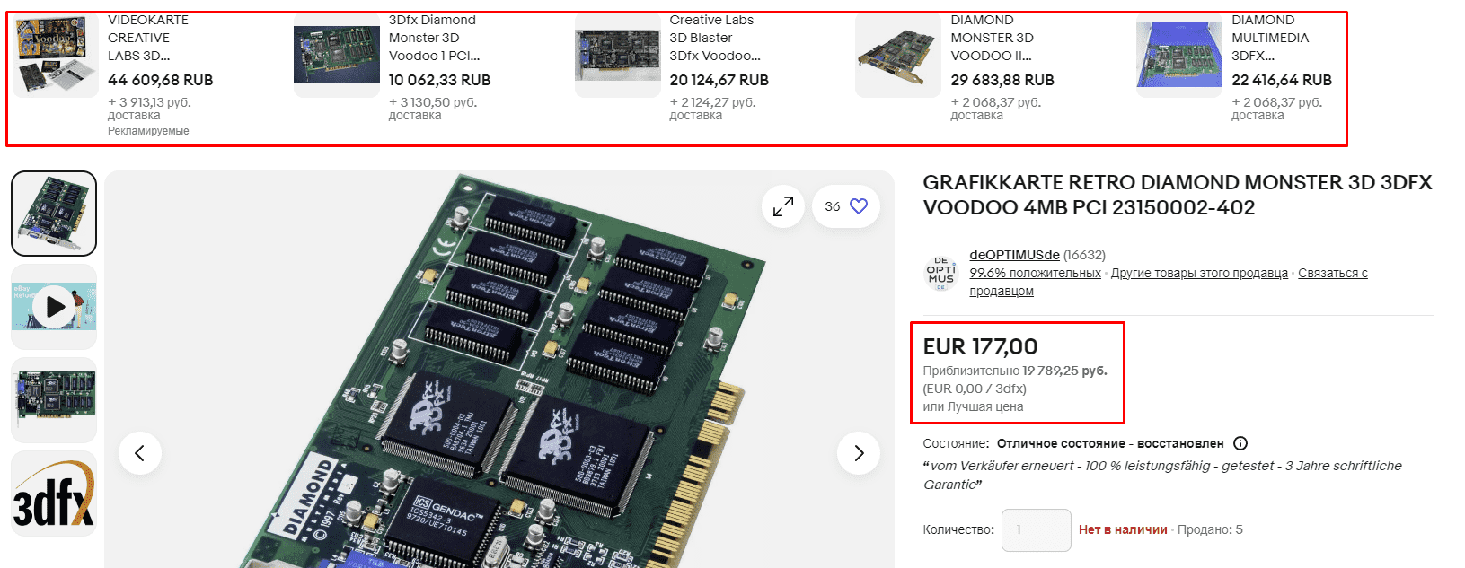 Ну я сам удивился, но факт. Винтаж, ибо! Есть же ценители ретро-ПК и топвиплухаре комплектухи тех времён. Или всякие 3dfx Monster 3D сколько стоят нынче. У меня был где-то не могу найти, ценность такая пропадает.