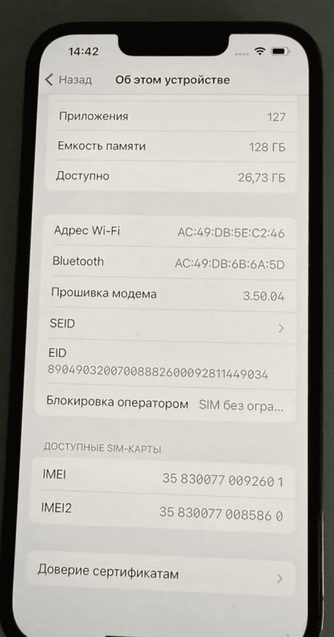 Продаю iPhone 13 Pro 128 GB. • Телефон в идеальном состоянии. • Батарея держит целый день, работает безупречно. • В ремонте не был, есть только небольшие царапины на экране. • В комплекте: коробка и кабель для зарядки (без вилки). • Батарея 77% Продаю, потому что купил новый.