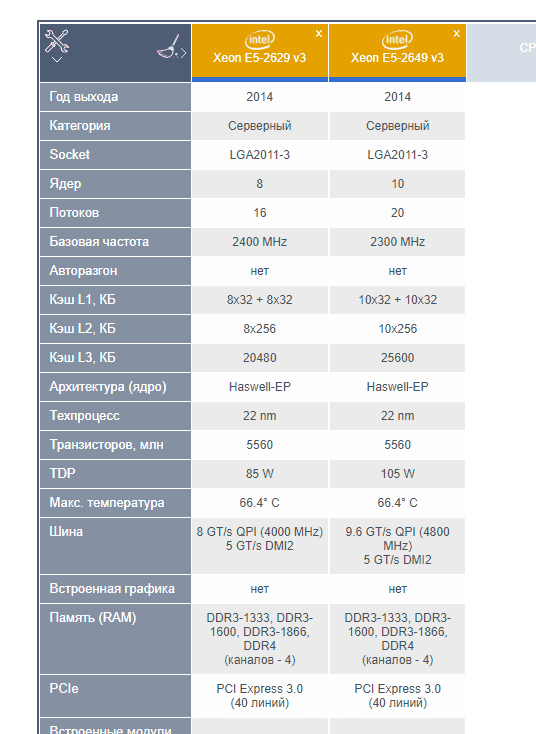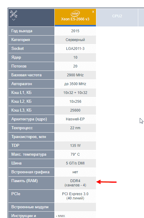 Верь мне и не верь всему что пишут на заборах . Еще те проказники Ибо, изначально, вся линейка поддерживает ddr3. Но, маркетологи, обрезали ее поддержку в фильных ревизиях. При этом, где-то по тихому оставили. А где-то выпустили процессоры, которых в официальной продаже не было. Но они были по ОЕМ поставкам. Например 2678V3 - ты его не найдешь на сайте. По сути, это 2680v3 - но без обрезания ddr3 памяти. Активно использовался в китайских серверах. 2666 - такой же OEM процессор, который, как говорят, юзал амазон. И он так же поддерживает и ddr3 и ddr4 память Xeon E5 2666 v3: характеристики, производительность и тесты, анлок ТБ, ревизии, покупка и цены Вот скрин с официального сайта Интел! Этих процессоров там просто нет , так как в общую продажу они не поступали никогда, а были сделаны под спец заказ.