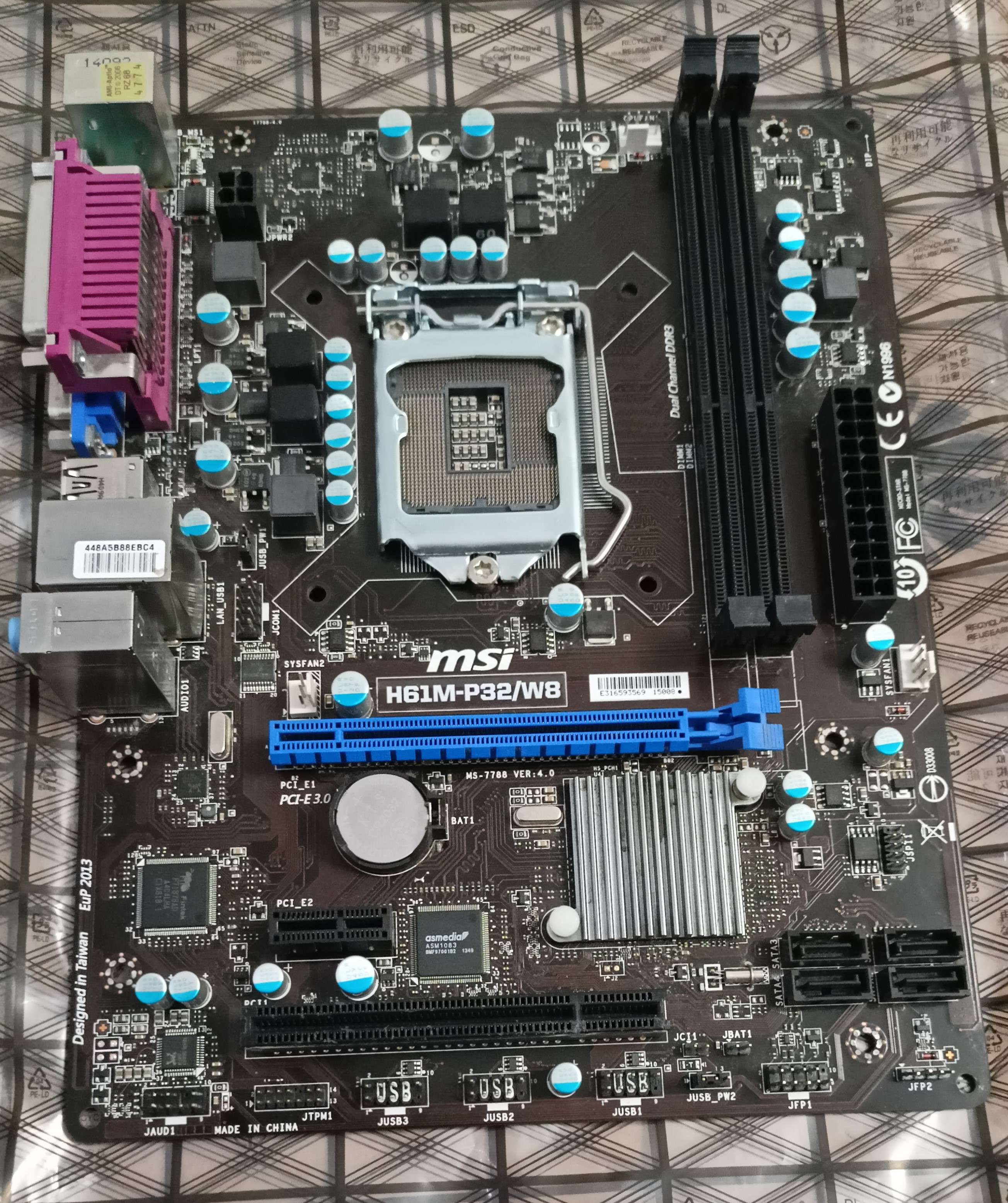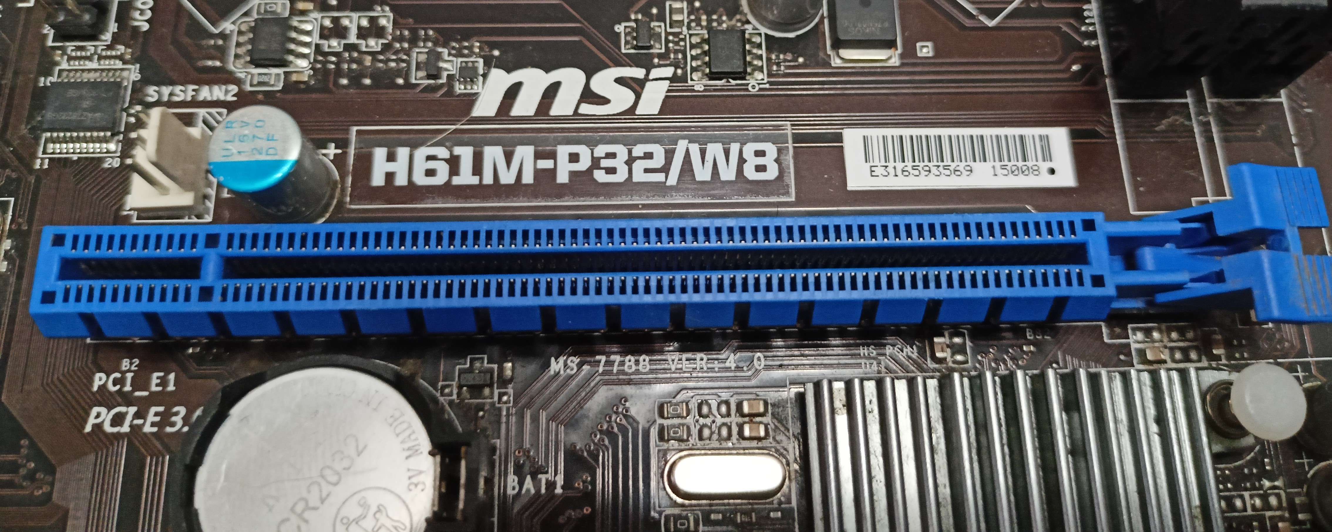 Мат плата MSI H61M-P32/W8. Не работает один слот под память, заглушки нет. Ценник 500₽
