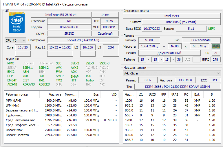 Есть комплект на Х99. Материнка Atermiter кажись (по чипсету пишут что B85) (двухканал DDR4)+проц 2640v4+память серверная DDR4 8GB 2133 Samsung