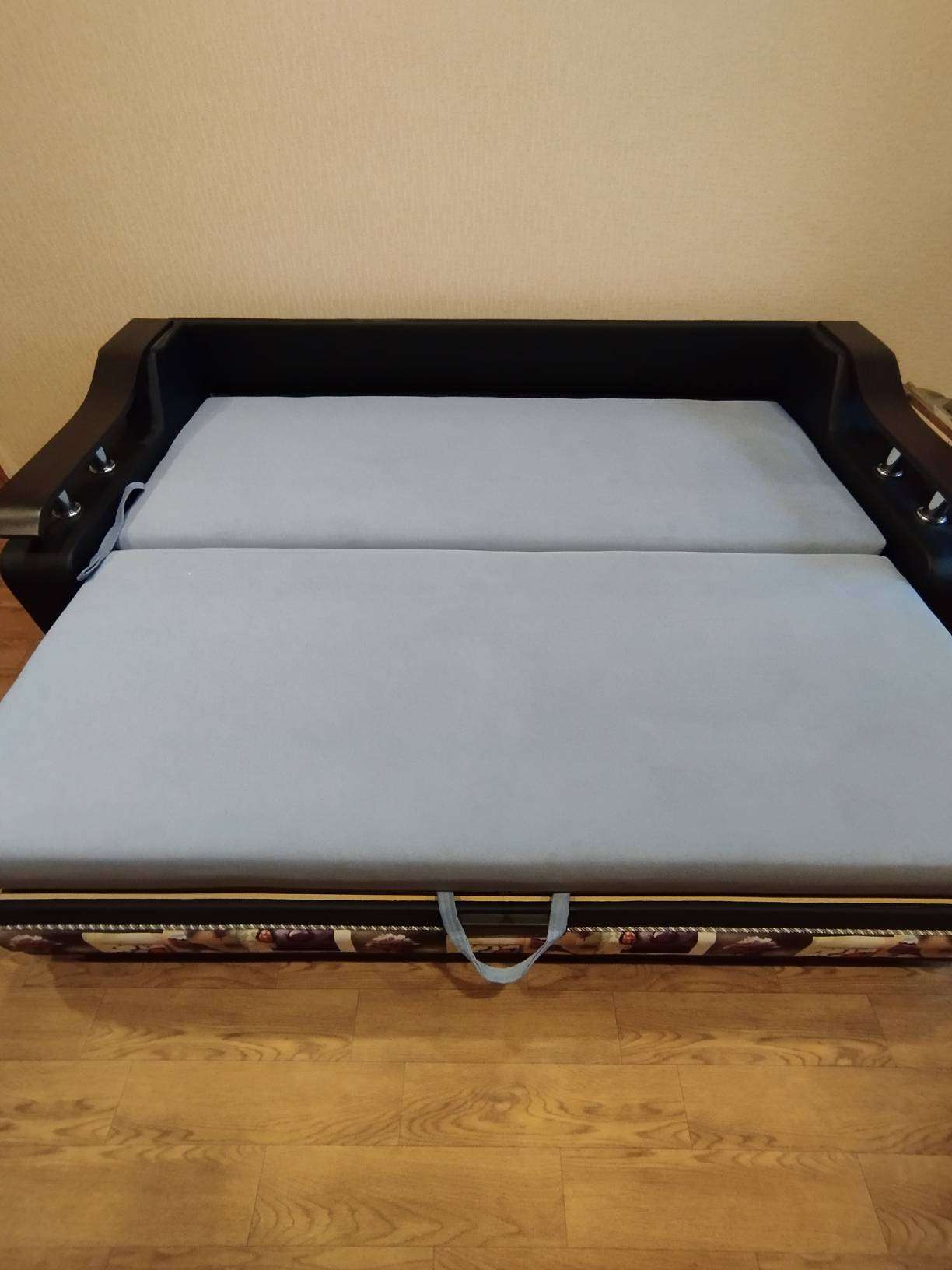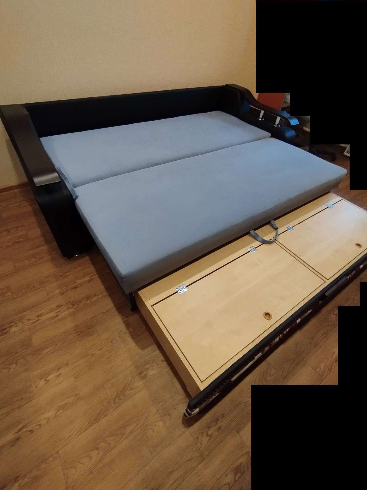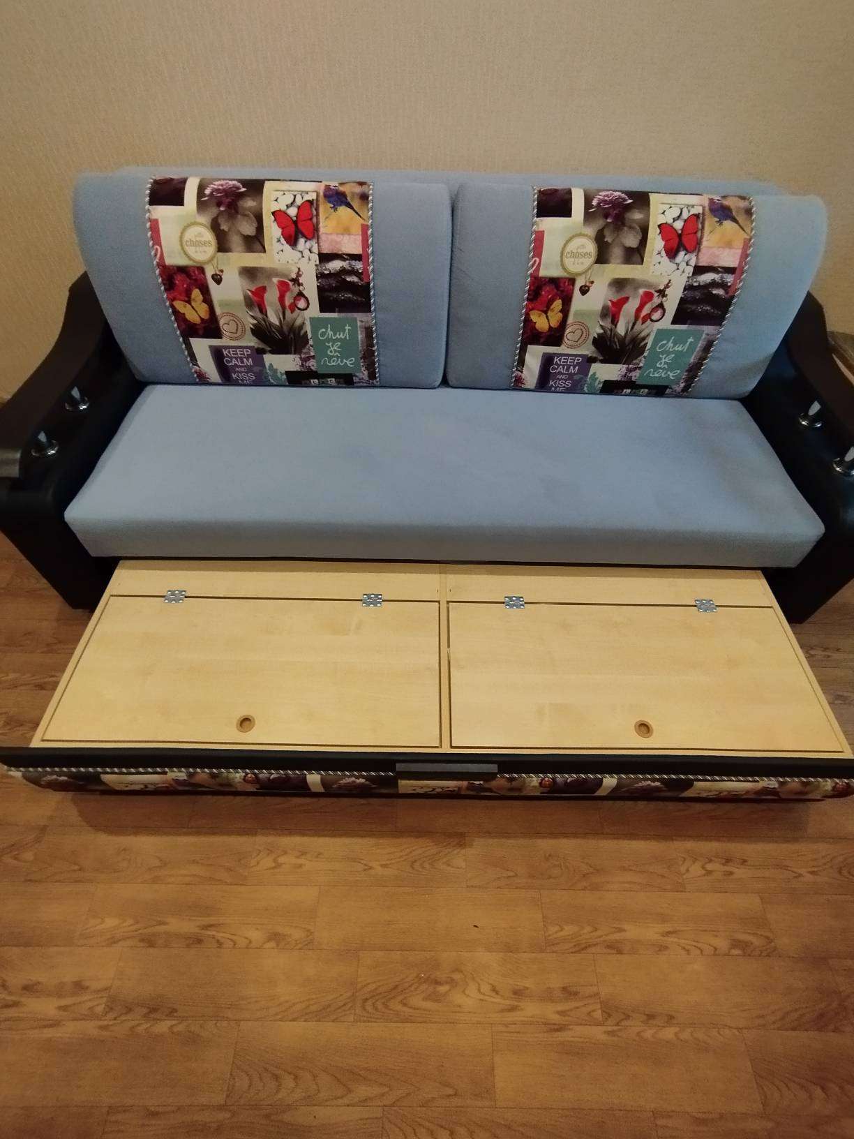 Продаётся раскладной диван-трансформер в хорошем состоянии. Практические не использовался. Без пятен и внешних дефектов. Качественные материалы и фурнитура. Жёсткое основание - отличное решение для приёма гостей. Раскладывается на 2-е позиции в зависимости от количества и роста гостей, всё видно на фото. В разложенном состоянии спальное место 195*205см. Вместительные ящики для белья. Съёмные подушки. Минимальный дефект: от длительного простоя сломалось колёсико в направляющей которое можно заменить при желании, на функционал мало влияет. Тип товара: Диваны Состояние: Б/у Доступность: В наличии Форма: Прямой Спальное место: Есть Размер спального места: 195 x 205 см Раскладной механизм: Есть Основной цвет: Голубой Ширина: 225 см Высота: 93 см Глубина: 100 см Материал обивки: Ткань Особенности: Ящик для белья, Подлокотники, Подушки Цена: 16500р. Самовывоз с Хорошева
