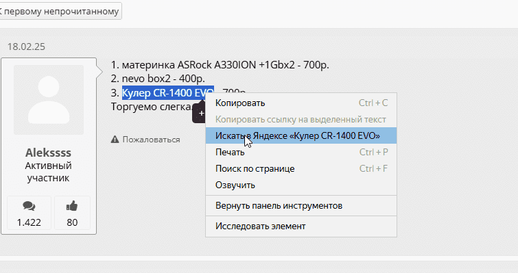 1. материнка ASRock A330ION +1Gbx2 - 700р. 2. nevo box2 - 400р. 3. Кулер CR-1400 EVO - 700р. Торгуемо слегка.