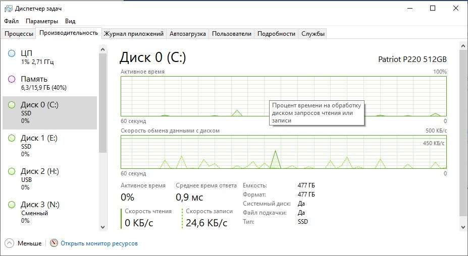 Нужна помощь умных дяденек и тетенек. Начал зависать стационарный ПК. Подозрения на системный SSD. Стандартная проверка через свойства ошибок не находит. Как на фото, тоже, вроде, нормально... Но в дипечере % времени часто 100% (когда подвисать начинает)... Как еще проверить можно или я не туда копаю, по незнанию?...