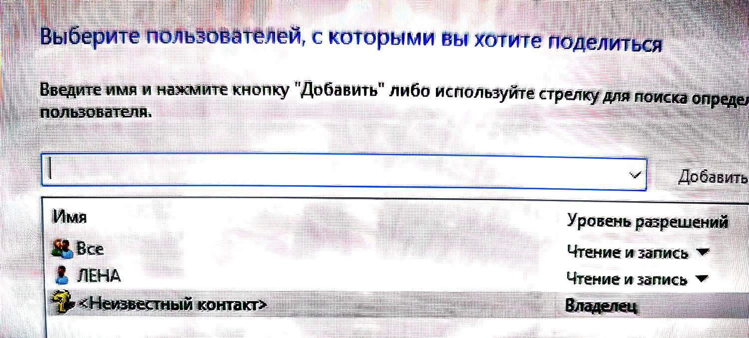 Фотки делаются фотоаппаратом. Но тут всплыла такая новость, похожая на вирусную активность: у всех папок в правах общего доступа обнаружился владелец "неизвестный контакт". Я его не создавал, а общий доступ есть только у двух папок, а не у всех. Я его удаляю, а при следующем открытии папки таких владельцев "неизвестный контакт" становится уже три. Картинку прилагаю. Странно, что Касперский вирусов не находит, два раза ставил полную проверку с новыми базами.
