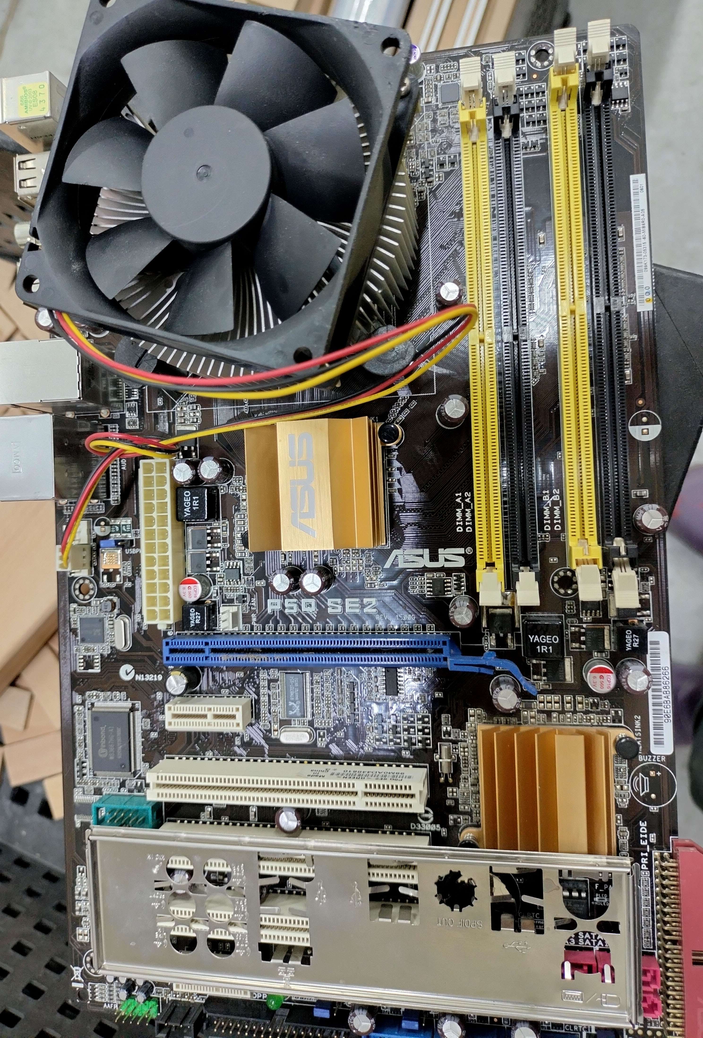 Условно работающая материнка с процессором. Даже заглушка есть. Неделю назад все работало, демонтировал аккуратно. Какой проц не помню... Сейчас находится на Садовой (на следующей неделе будет на Красном.)