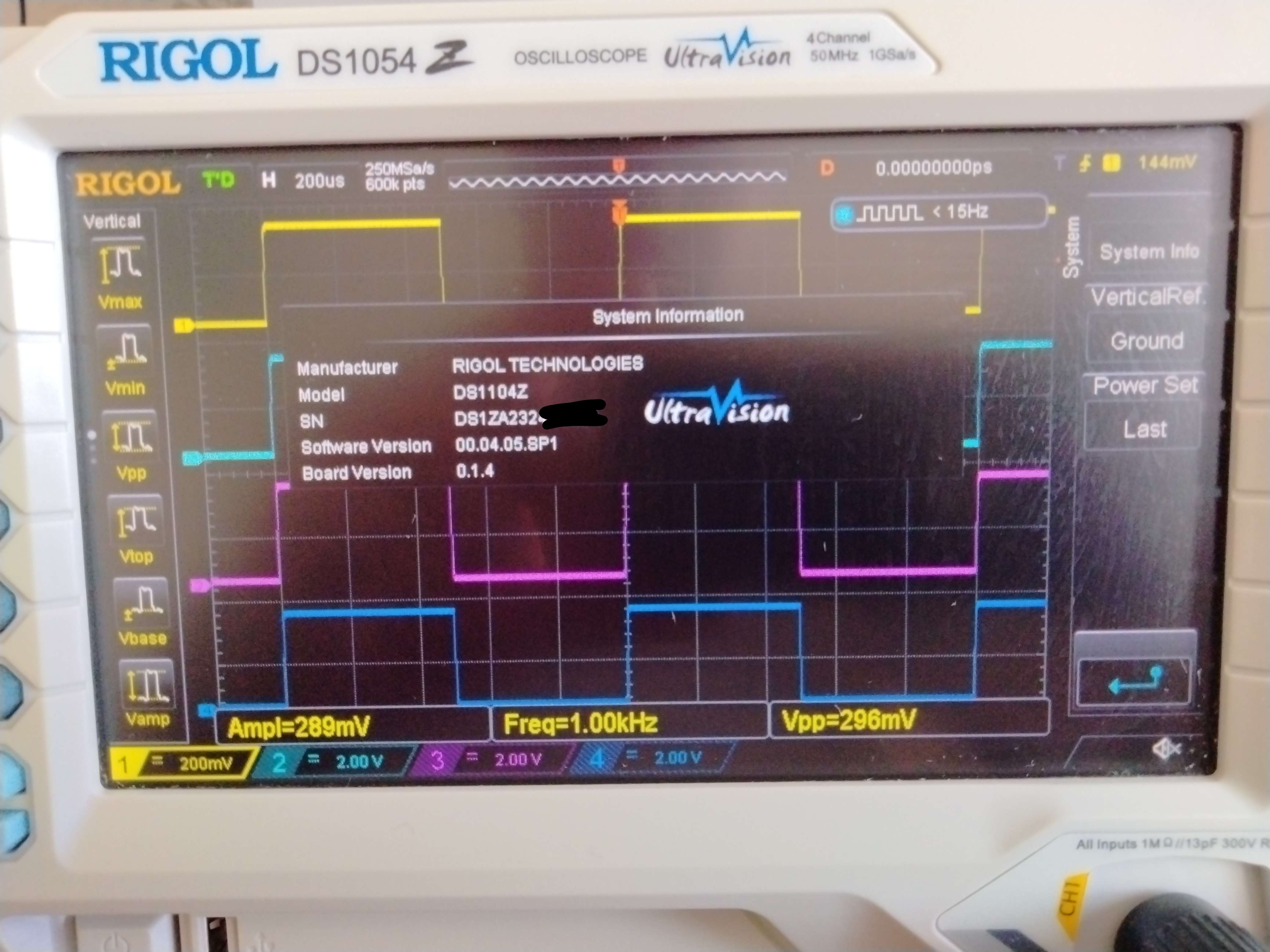 4 канала, 50 (100) МГц. Полный комплект в коробке, состояние нового, пломба на месте. Брался под хобби, не пригодился. 40т.р. без торга, тзр.