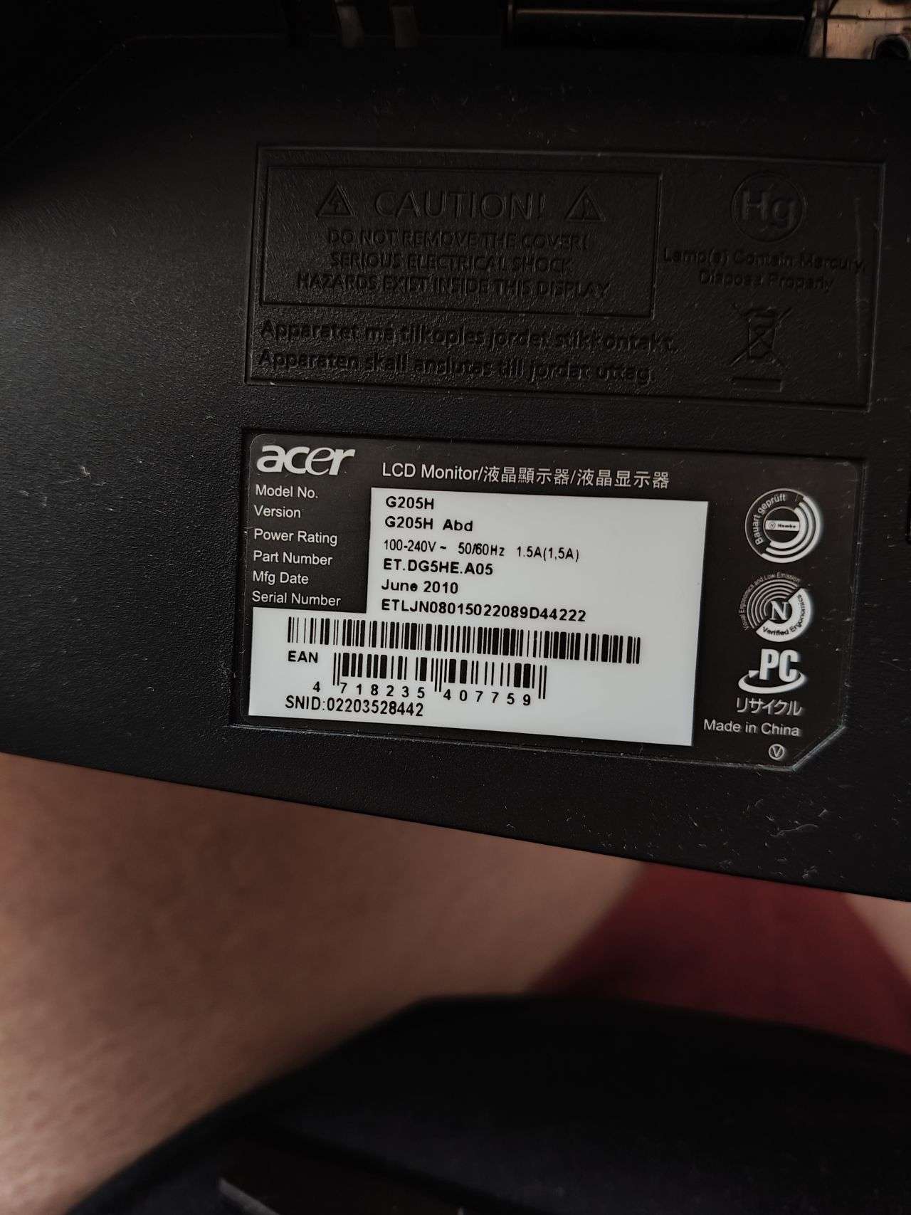 Acer G205h. 19,5 дюймов. TN. 1600х900. Экран глянец. DVI и D-Sub. Рабочий. Повреждений нет. Без кабелей (пошли на новый моник). Цена: 900 руб. 7 ветров. Могу в центр привезти.