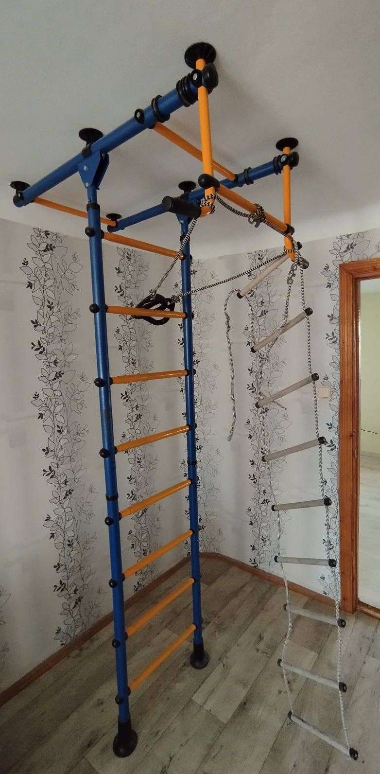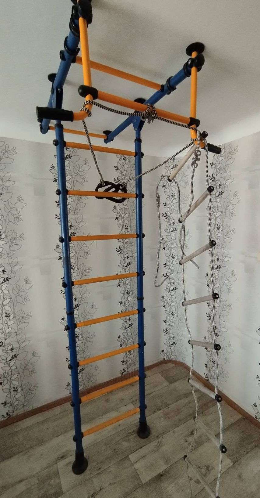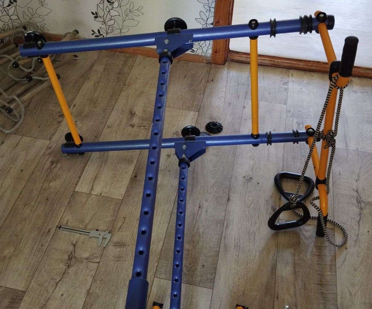 Продаётся шведская стенка с турником. кольцами и лестницей. Распорная конструкция в пол и потолок позволяет не портить стены и подбирать оптимальную высоту. Высота на фото 236см. Глубина (от стены) 105см. Ширина по турнику 84см. Ширина по лестнице 57см. Цена: 3000р. Саморазбор и самовывоз с Хорошева. Тел: 8~9O*23-6ОO~329