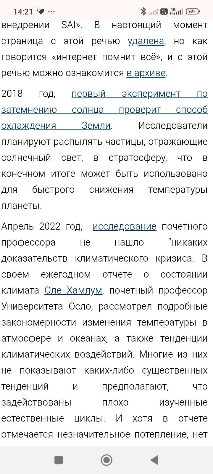 Сёма, никаких теорий заговора не существует. Уразумей. Это социальная инженерия. Мало ли кто во что верит, в чем пытается кого-то убедить? Не надо слепо доверять. Ты доверяешь, что с самолётов не распылить алюминий. Но тебе чёрным по белому написано о цели геоинженерия для охлаждения Земли выбрасывать тонны алюминия в аэрозоля в год. От ведущего геоинженера. Ты в состоянии принять этот факт? Тебе приведены свидетельства людей, которые делали лабораторные анализы, нашли превышение, причем многократное. Тебе приведены речи в ООН. Акт Конгресса, где химтрейлы причислены к экзотическим вооружениям. Ты продолжаешь верить, что алюминий и пр. не распыляют. Верь на здоровье. Создай свою премию "Алюминиевая дуля" и вручи мне. А Вам к нему надо было ещё вчера. Накануне 11 сентября Счетная палата уличила Пентагон в сокрытии десятков триллионов долларов. Ты, наверное, веришь, что они все пошли на шлюх, а я вот сомневаюсь. Overclockers.ru: Шестой год подряд Пентагон проваливает аудит Я вот вполне допускаю, что изменением климата занимается глубинное государство. Причем уже не первый век эта тема стоит на повестке у глобалистов. Они могут менять погоду на Земле своей геоинженерией. Чтобы под песню о глобальном потеплении лишить человечество прав. Как в ковид. Сейчас поищи отчеты и официальные исследования о ковид, их нет и не будет, и о вакцинах нет и не будет. А неофициальные ты мне видишь в упор потому что "конспирология". Почему внезапно нет ПДК на алюминий в окружающей среде? Это просто так произошло? Это практика заговора, не?