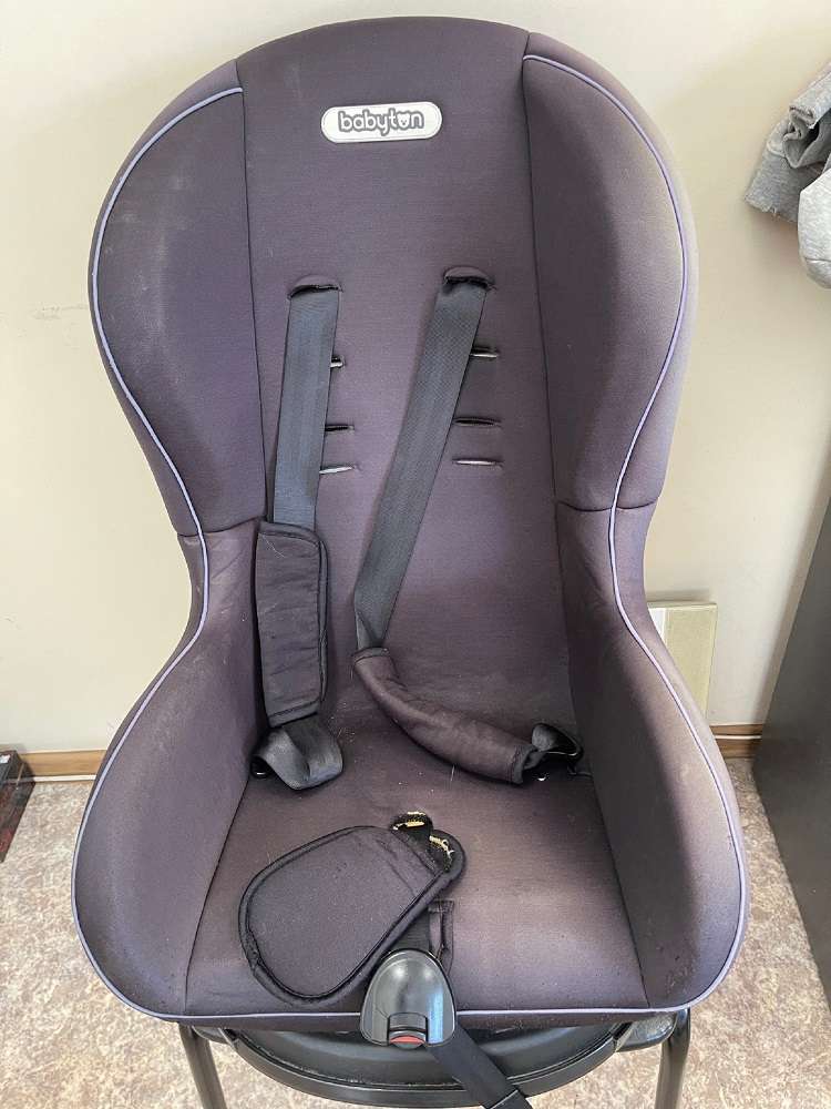 Отдам кресло. На одной этикетке написано 0-18 кг. на другой 9-18 кг. Угол наклона меняется, можно поставить в полулежачее состояние. Крепится ремнём. Прищепка для ремня есть. Потрепано жизнью, но вполне в рабочем состоянии. Цвет это не грязь, а выцвело на солнышке. Хотя чехол постирать можно бы.