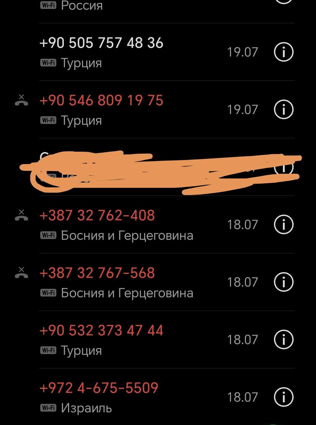 Недавно мне прилетела куча входящих с номерами Турции, Боснии и Герцеговины, Черногории, буквально с месяц назад, если не меньше.