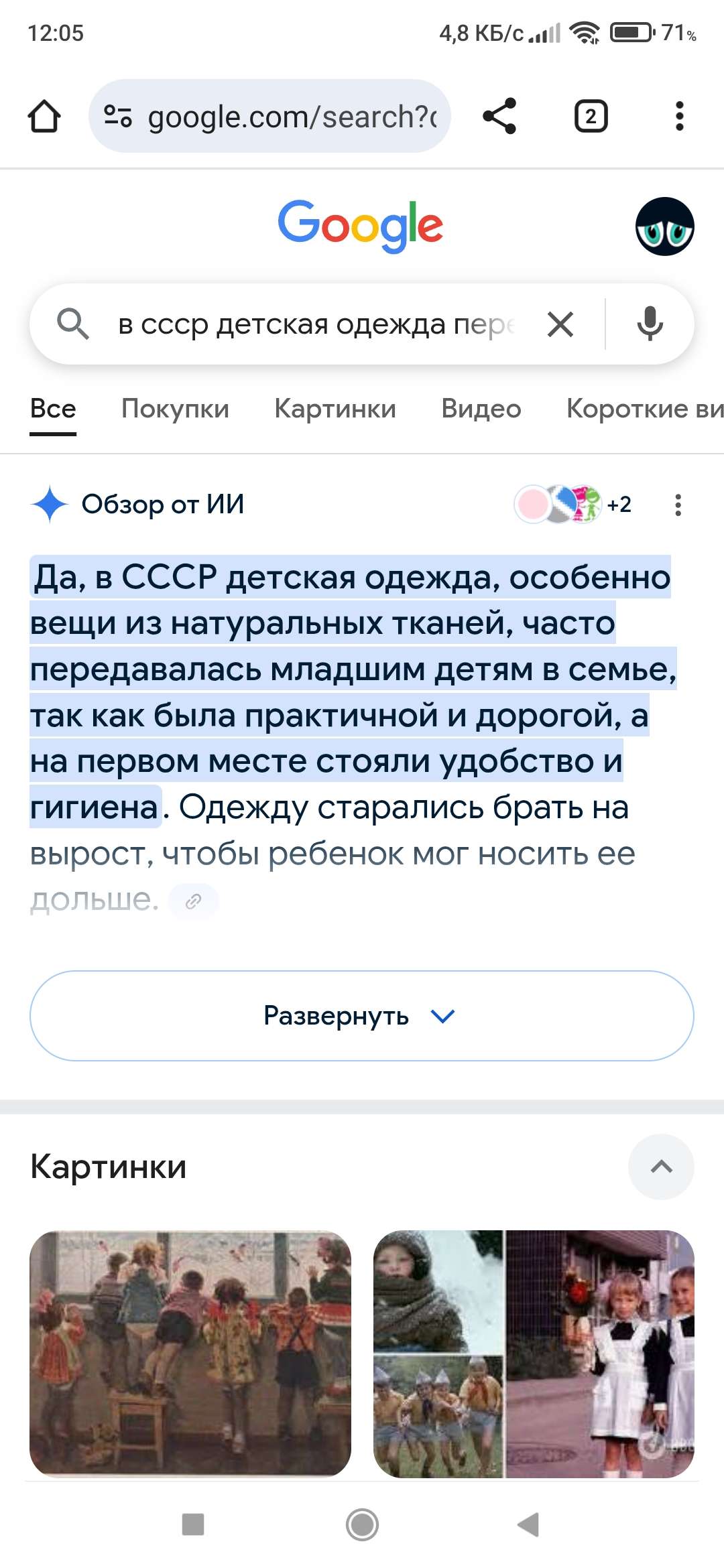 зы. вот тебе на майлру ветка про практичность. Плюс нужно учитывать советский меналитет, к примеру хлеб было выкинуть западло и т.п. Видимо пришло ещё с послевоенных времен, когда действительно ничего не было и полстраны в руинах, imho кстати почему то мне ии про низкое качество ни разу не написал, несколько раз пробовал, тексты разные, но вот такого не встречал. У тя там случаем не айфон? И расскажи мне каким образом одежду низкого качества сможео было годами носить передавая из поколения в поколение? Китайские то трусы вон по большей части одноразовые