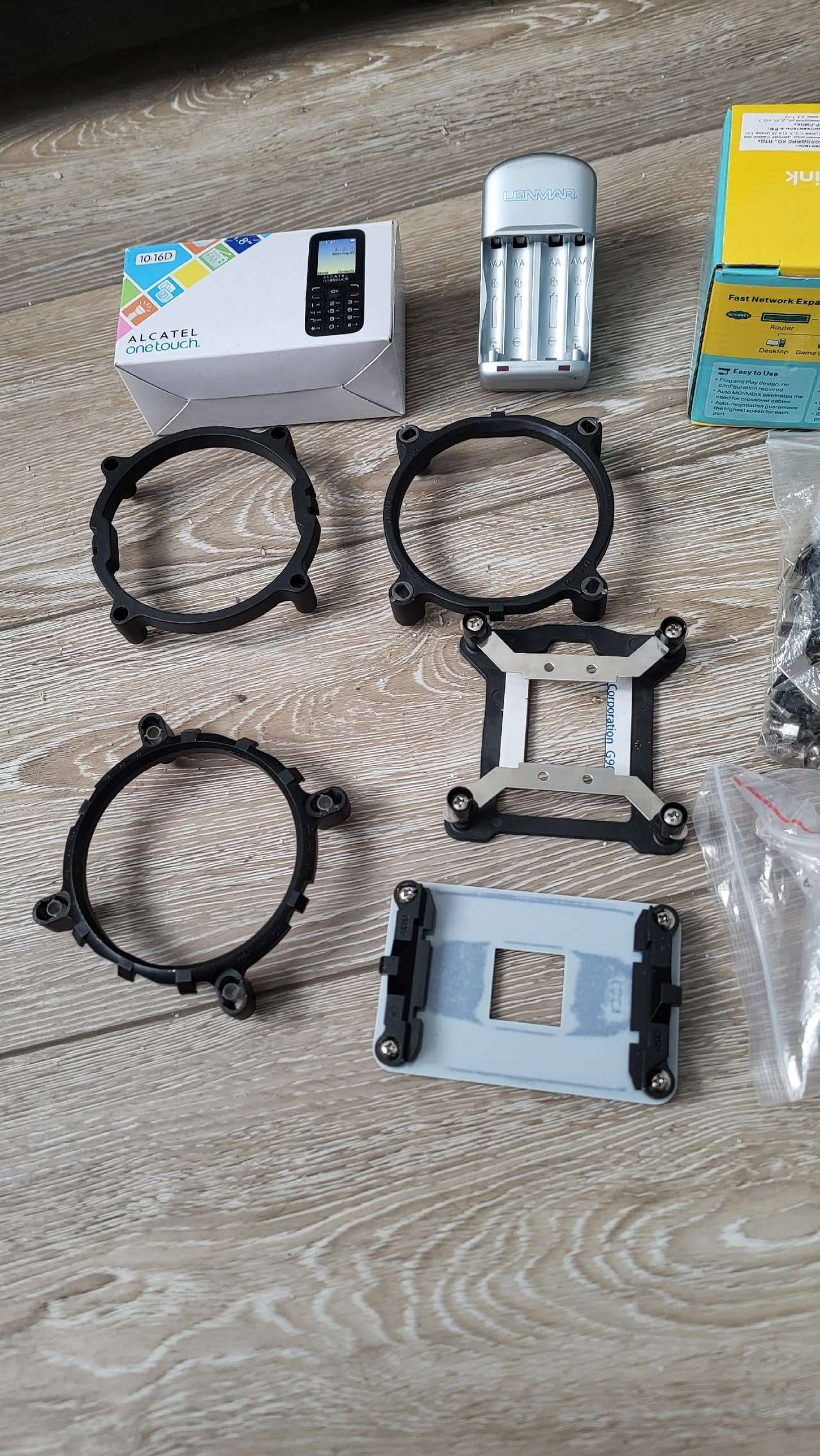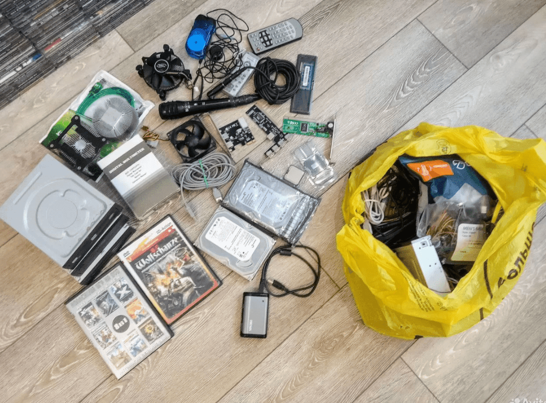 телефон, блютуз наушники defender - рабочие, недавно проверял. хабы концентраторы Rj-45 и юсб картридер - тоже рабочие. DVD-RW рабочие + двд диски чистые. переходники все рабочие! Крепления от 4-х башенных кулеров (интел \ амд.) процы \ память рабочие.