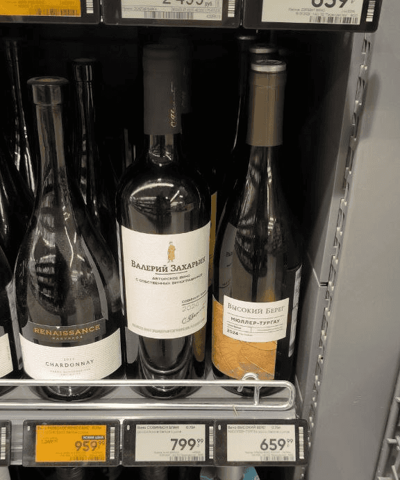Докладываю. Пробежался по магазинам в поисках нужного мне вина. Не нашел. Но, например в Докере хороший выбор шампанских вин Нового Света, в ХантерВайн все вино продается уже охлажденным, в Ленте и Ашане выбор вин от Захарьина самый большой и пересекается друг с другом частично.