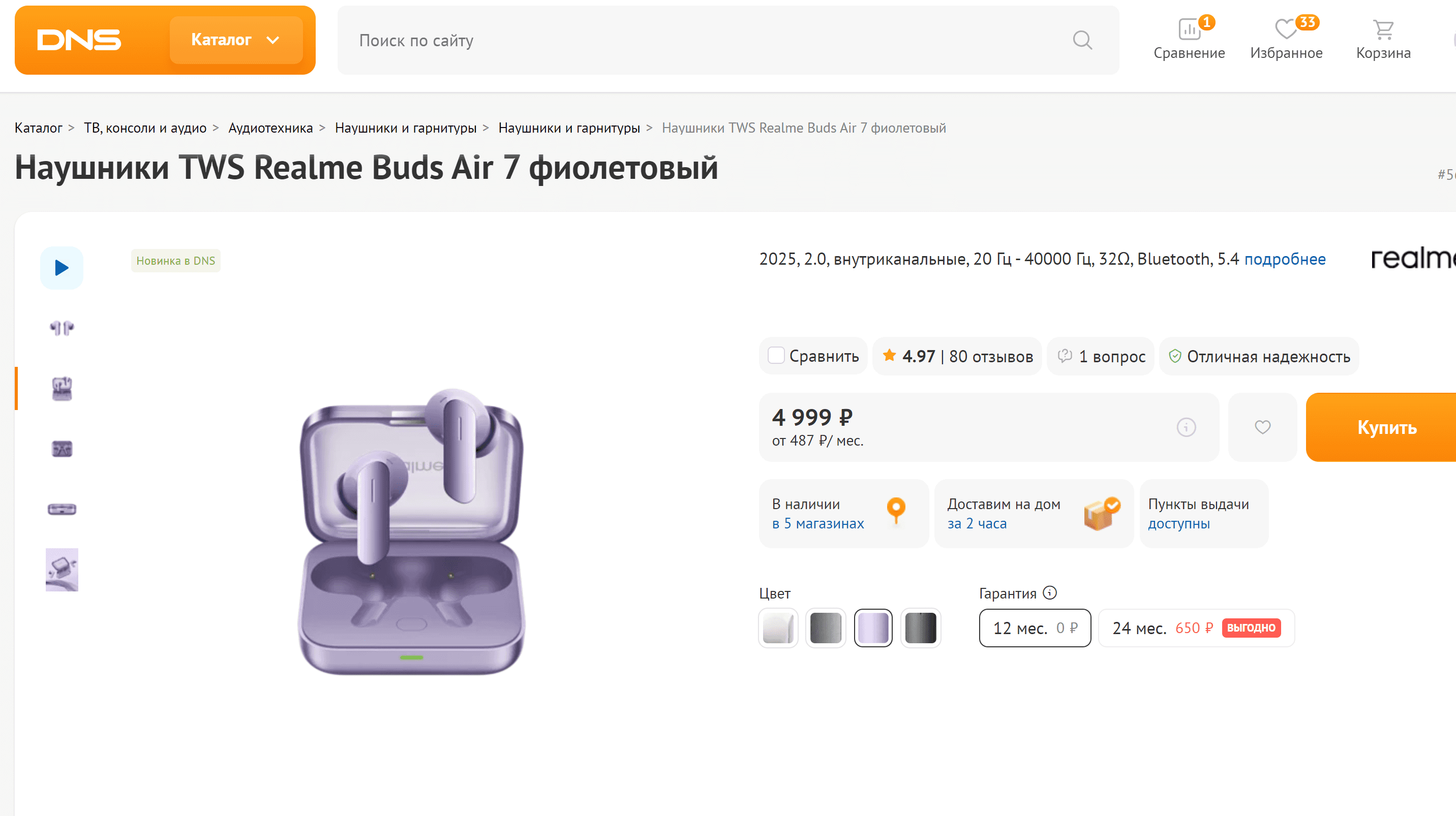 Наушники TWS Realme Buds Air 7 глобальная версия новые, упаковка запечатана. торга/ обмена нет 2500р