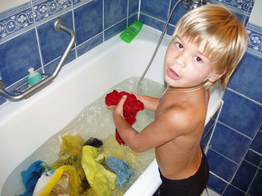 Ребенок растет самостоятельный Сам стирает свои футболки, которые пачкает по 3 штуки на день. Правда приходится за ним потом перестирывать