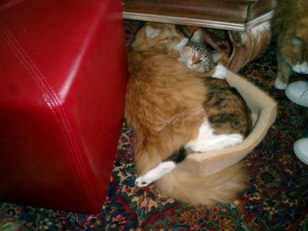 Владимир Ну может конечно не 2. Но клуб женихов "своих" продвигает. Да и потом чтобы были красивые котята, нужны красивые мама с папой. У меня Агата-Матильда де ля Флер красавица черная, кудрявая, желтые-прежелтые глаза. Нам нужен голубой или черный жених. Или же с геном сиама, тогда вообще убойные котята будут: каракулевые сиамы. А этот хмырь с которым мы женимся, красной расцветки Котята будут окраса "размазня" Есть один черный корниш, но хозяйка хочет 100 баксов за вязку. С дуба рухнула, что ли? Упс... То-то я и думаю, перестали звать на выставки, звонить, спрашивать, интересоваться когда же мы наконец-то разродимся...