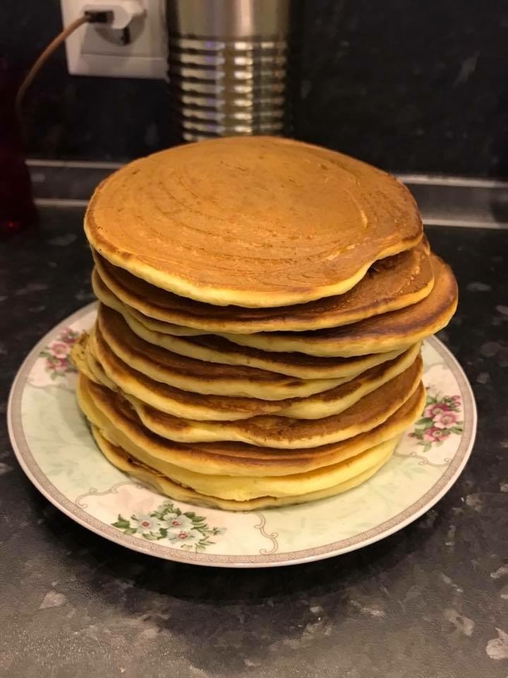 Ну, кто первый показывать блины?) Я сегодня собралась испечь мои любимые на дрожжах, а муки то не купила Ну а пока ждём блины, покажу панкейки. • мука – 150г (1 стакан 250мл) • сах. песок – 1ст.л. • соль – 1/2ч.л. • сода – 1/2ч.л. • яйца – 1шт. • оливковое масло – 1ст.л. • кефир - 250мл Все ингредиенты комнатной температуры. Смешать венчиком соль, сах. песок, соду, оливковое масло и яйцо. Добавить 3 ст. л муки, перемешать, влить 50мл кефира, перемешать. Добавлять порциями муку и кефир, перемешивать венчиком, завершить мукой. Получится тесто консистенции густой сметаны. Наливать тесто в центр хорошо разогретой сковороды примерно 50мл, разравнивать в лепешку ~10см. Выпекать панкейки на сухой сковороде. Переворачивать их как только вся поверхность покроется пузырьками.