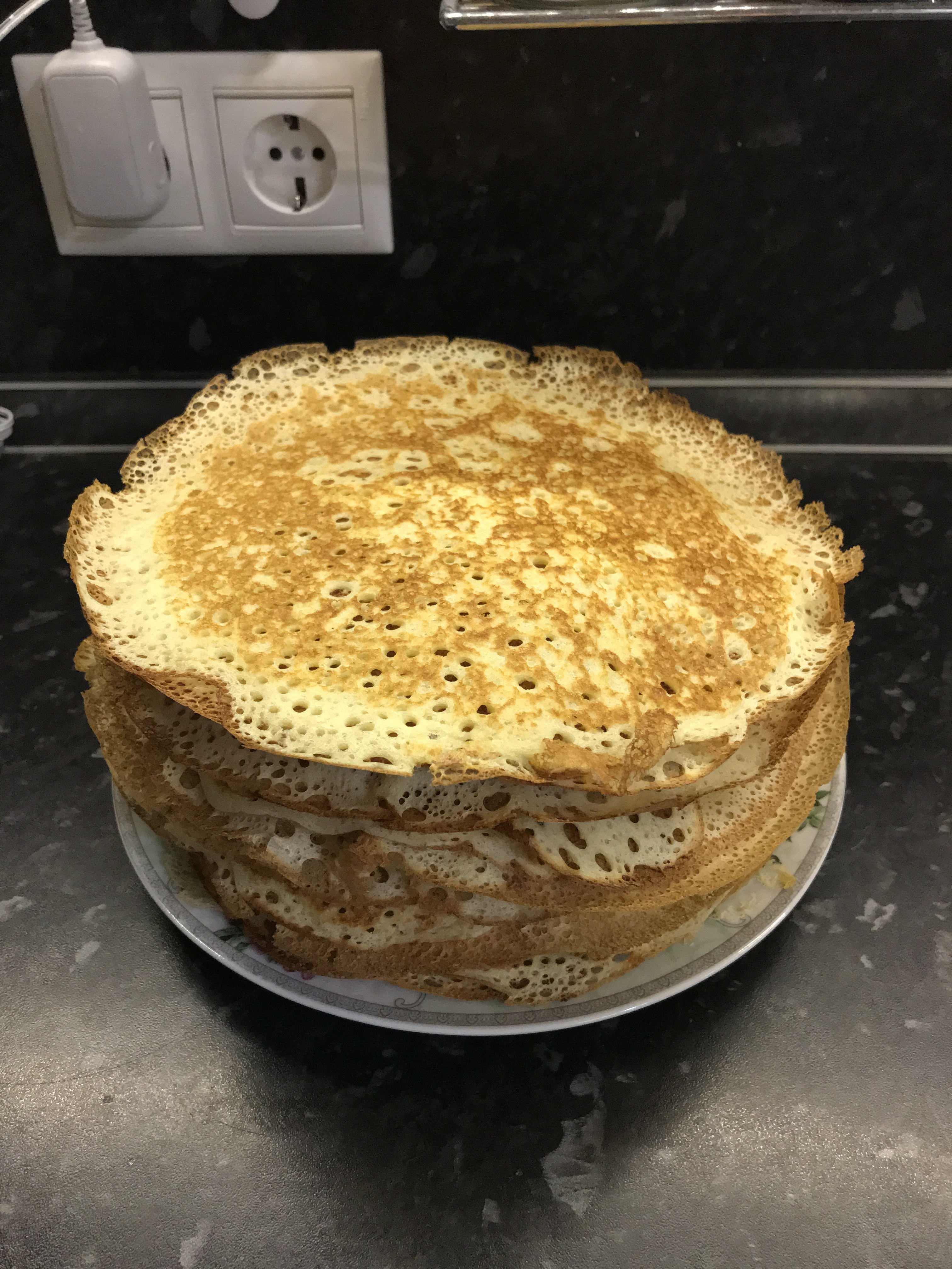 Тесто готово, осталось дождаться возможности испечь)) Как выше было сказано, самое вкусное в блинах это дырки))