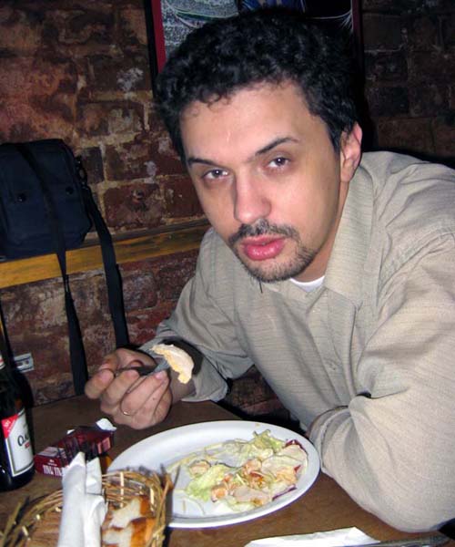 Встречались трое: Отелло, КаттиСарк (Игдрассиль) и ваш покорный. Пожрали, выпили. Как всегда мясо и не как всегда безалкогольного пива, ибо мы с Отелло были за рулем. Катти с нами не была за одно и пила ром с колой, если память не изменяет. Отелло периодически замарачивался на тот факт, что у него потек тосол. А в целом посидели ничего, поболтали про то, сколько надо зарабатывать в городе Москве, шоб не подохнуть с голоду и про плюсы и минусы современной ипотеки. Отелло и еда