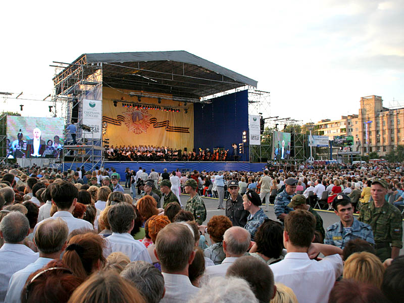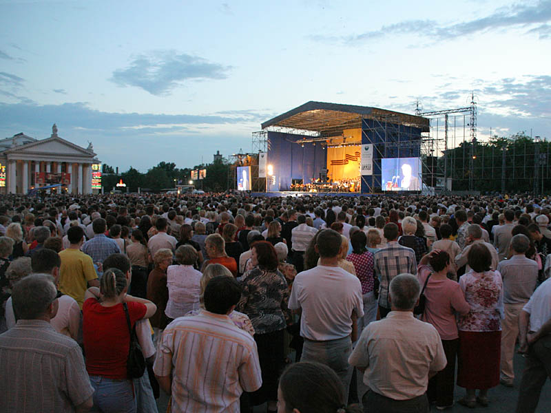 На концерт пришли не только приглашенные лица, но и множество почитателей Хворостовского, заполонивших площадь