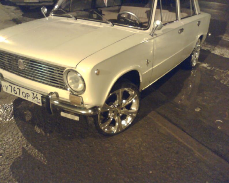 Возможно, внутри старый реставрированный салон. Большой фриэйр на задней полке. В принципе машина внешне сделана грамотно. Кроме дисков и двойной трубы никаких наворотов. Даже зеркала остались родными Я могу примерно сказать их стоимость. Мои 4 диска новые стоят 60 000 + новая резина 25 000. У него диски попроще, но не думаю что стоят намного дешевле. Где-то в сумме колеса 60-65 тысяч выходят