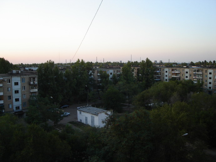 такое ощущение будто рассвет после ядерной войны.... с облезлыми стенаим домов... вот вид из моих окон, юго-запад, там где заходит солнце...