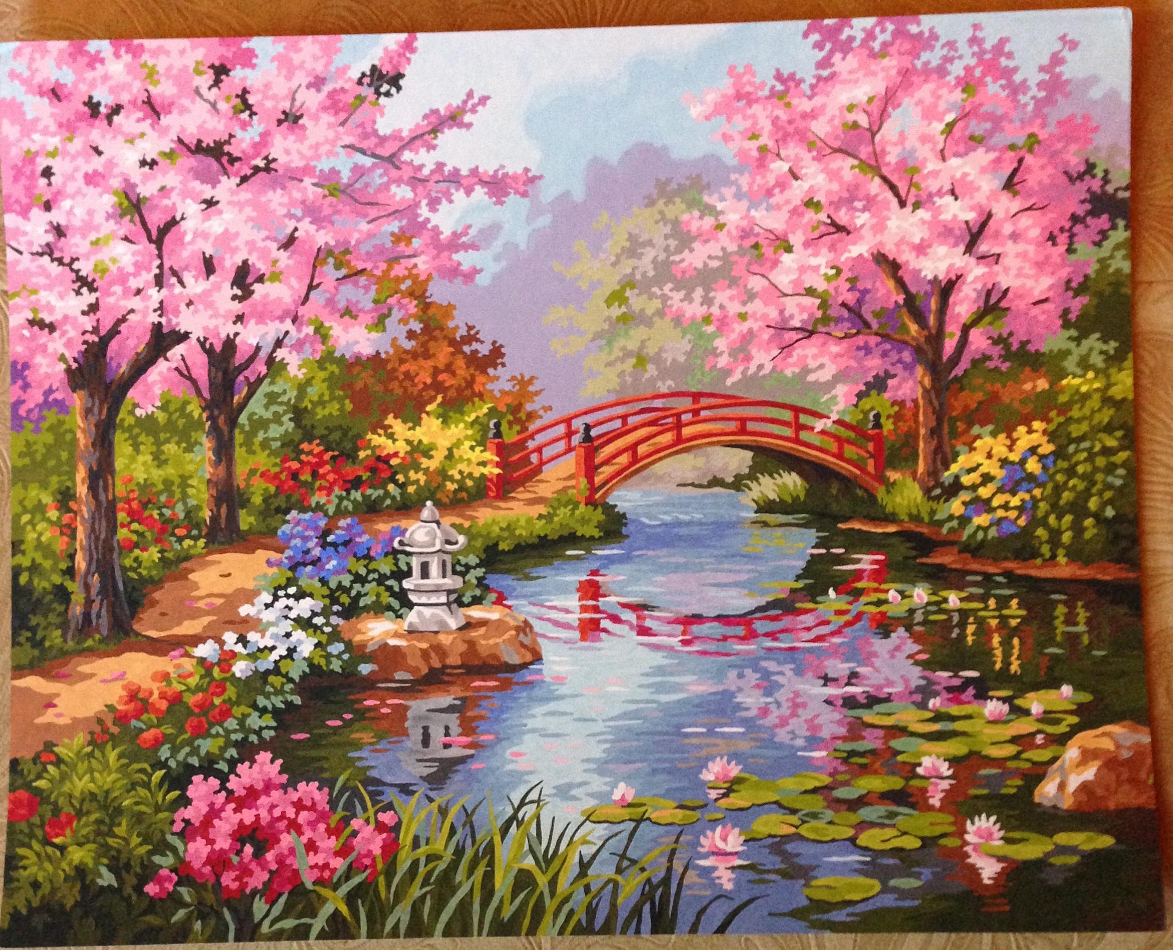 Да, акриловыми. Это маленькая картина, часть цветов надо смешивать краски. 18 оттенков, и инструкция какие номера смешивать чтобы получать цвета буквы. А вот следующая картина у меня больше, там все цвета готовые.