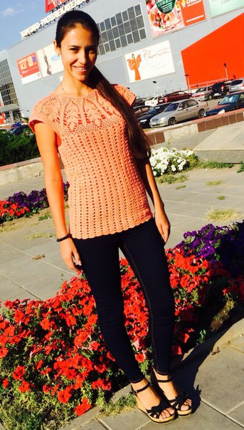 Связала подруге блузку, а старшая ее дочка отняла ). Не судите строго...это первая серьезная вещь на взрослого.
