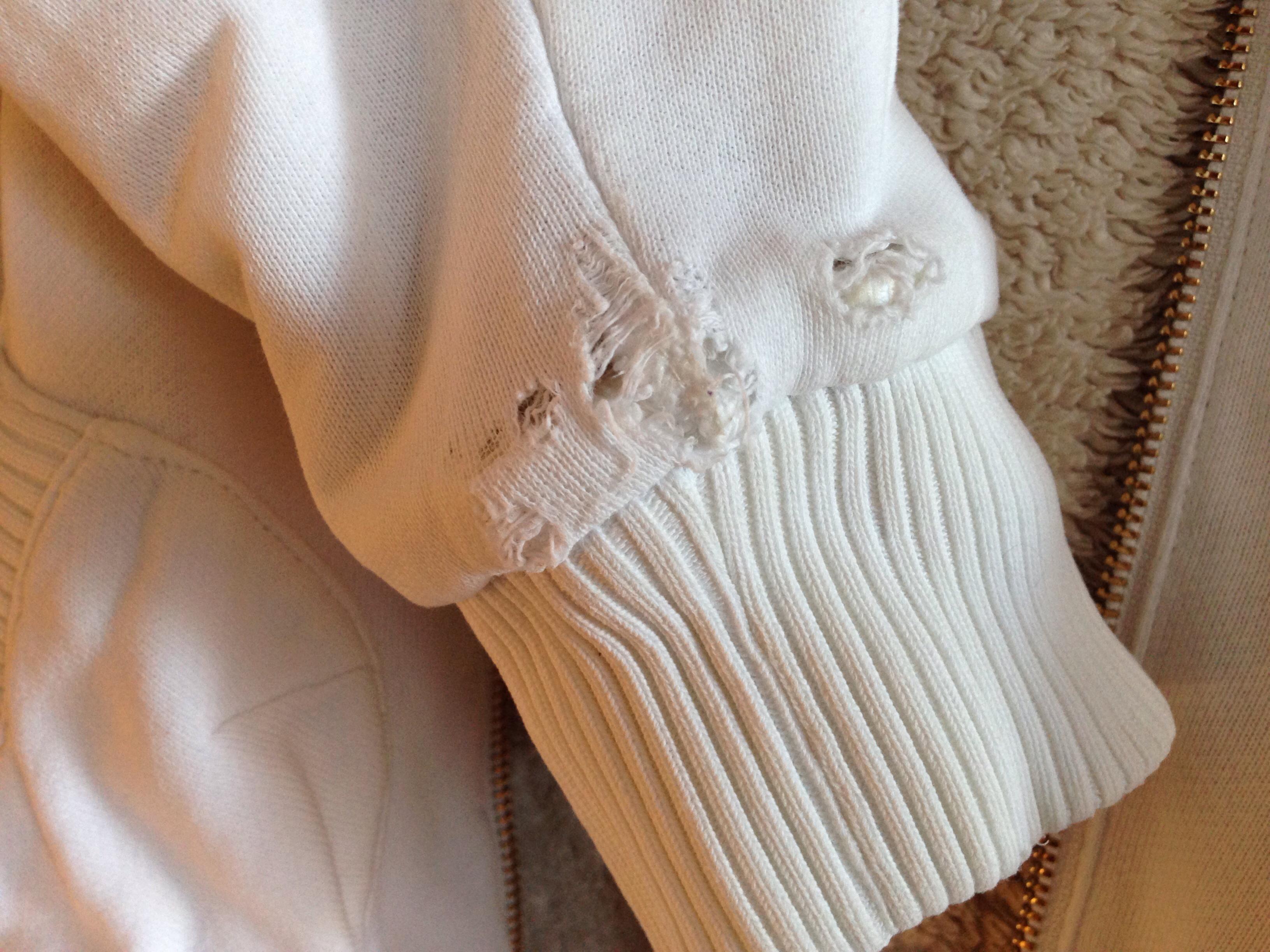 Каким образом можно починить эти дырки? Просто зашить аккуратно. Если перешить весь манжет, то будет коротко. По кругу пришить какую нибудь каёмку? Что можно сделать? Можно ли? Я пока списала её в домашний обиход, по деревне ходить. Но она целиком целая и годная. В ней не мерзнут руки в мороз, сверху пуховая жилетка. Вариант новой рассматриваю, но пока не видела в продаже. Хотелось бы конечно и эту починить. Может вышевкой как нибудь застрочить