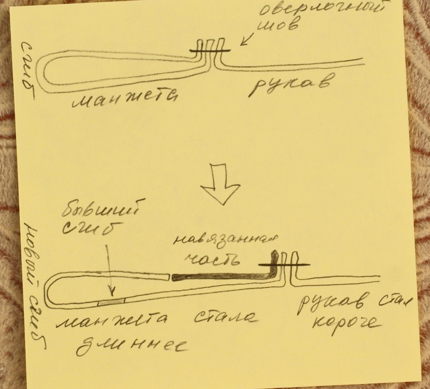 имела в виду, на длину будущей манжеты, а не целый рукав. и пополам можно свернуть. Если есть кофта с рукавами, вязаными резинкой. у меня таких раньше полно было, типа толстых водолазок