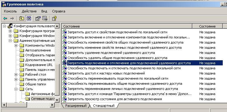 еще раз: конфигурация пользователя - административные шаблоны - сеть - сетевые подключения. тебе ж vitalic написал...