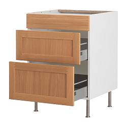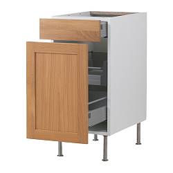 2 zyu-zik Фасад Тидахольм. Дуб. Фурнитура Блюм. Максимально беру ящики. На каждый ящик идет пара доводчиков (200р). Мойка 60 см -2 ящика. Шкаф 3 ящика (в средний ящик вошли: чайник, сахарница, 6 чайных пар, 36 тарелок и салатников. Тарелки диаметров 24,26.) Кладовая секция на 40. Верх- ну допустим 2 шкафа, 60 обычный, 40 со стеклами. Мойка 60 см 2 ящика, кладовая секция на 40. 3990+3610+6760+6980=21340+1000 (доводчики)+(700 из Икеи до Волго (400 такси, 300 водителям)+ 150 (такси) +1300 (столешница 220 см)+ ножки-ручки (300). Здесь фурнитура Блюм. А у вас какая цена на этот несчастный метр будет с фурнитурой Блюм? В именах прикрепленных файлов-цены, (корпуса+фасады, фурнитура; без доводчиков), нижним подчеркиванием отделены габариты. Угловушка- 90-90см. Там карусель стоит. Год назад тандембокс Блюмовский шел от 1000, в этой кухне их 5, + доводчики стоили столько же. Кухню я собрала сама, за 2 часа.