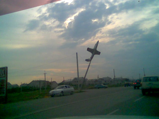 Сегодня въезжаю в Волжский и увидел новое архитектурное новшество. Кажется раньше его не было. Если кому интересен внешний вид, прошу смотреть. Ну, а мне интересно, в связи с чем его установили? На рекламный щит вроде не похож... Никаких аэродромов и аэрошкол вроде рядом нет...