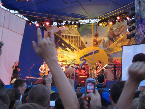 Итак, представляю вниманию общественности фрагмент песни "Наш дом". Сразу предупреждаю, что качество картинки не очень, так как старался максимально сжать видеоролик. Получилось правда, только до 5 Мб. Да и тот факт, что я находился в самой гуще толпы, не мог не сказать на стабильности изображения...Вообщем, кто хочет, даю ссылку. (Чтобы скачать файл, нужно кликнуть правой клавишей мыши на ссылке "Скачать файл" и выбрать из меню пункт "Сохранить обьект как")