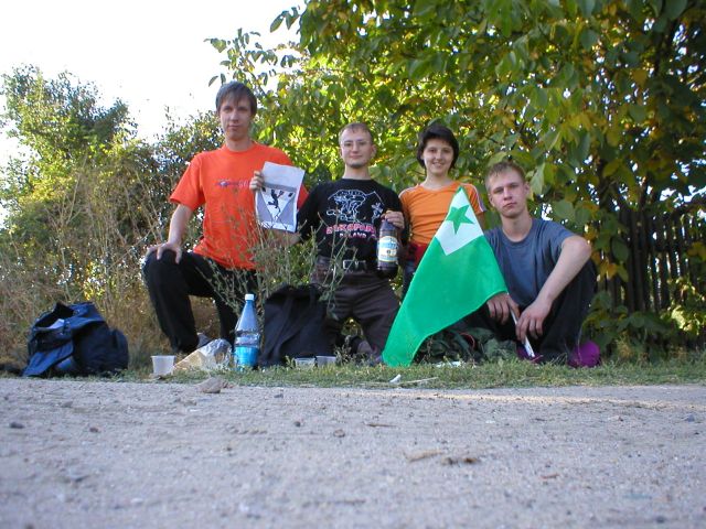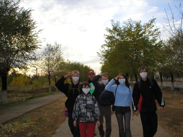 Свершилось! Мы прошли! Итак, вкратце и по порядку: Стартовали по плану в 8-00 01.10.05 с Каустика 7 человек. По пути то и дело присоединяются-отсоединяются сочувствующие Максимальное количество участников одномоментно - 11 человек. Идем по улице 40 лет ВЛКСМ. По промзоне идти невыносимо - воняет. Шли в хирургических повязках, предварительно закупленных в аптеке по 2.50 за штуку. Поворочиваем на мост через канал. На мосту через канал встреча с фотокорреспондентом. Где-то в районе трамвайного кольца во дворике устраиваем первый привал. Отдельными участниками начинает употребляться алкоголь в виде пива. Далее выходим на Лазоревую и идем по ней уже в восьмером. В районе Веселой балки к нам присоединяются еще двое. Идем по ул. Колосовой. В общежитии какого-то колледжа обедаем пельменями. Выходим, подбираем еще одного участника. Переходим в Советский район. Вместе с троллейбусом поворачиваем к Волге и переходим на улицу Электролесовскую (где трамвай ходит). По пути теряем бойцов. Кто-то ноги стирает в кровь, кто-то сруливает на Бачинского и Стелавина. И в районе 35-й Гвардейской нас остается шестеро. Начинает темнеть. Идем дальше. трамвай поворачивает налево, а мы идем прямо до ж/д переезда. Переходим второй переезд. И начале 9-го теряем еще двух участниц. Нас остается четверо. Остро встает вопрос ночевки. Обзвонив знакомых. Находим ближайшую квартиру на Рокоссовского. Переходим в Ворошиловский район и по мосту подходим к "Пивовару" Делаем очередную "остановочку". Затем идем по Рабоче-Крестьянской до Современника. Идем уже с трудом. У кого-то болят связки, у кого-то что-то еще, у кого-то ноги вообще не слушаются В рамсторе закупаем ужин. Поднимаемся на Рокоссовского и к десяти часам вписываемся. Результат дня - пройдено 4 района. Планируем проснуться в 7-00, чтобы в восемь выйти с Современника. Грандиозные планы постирать носки, чтобы с утра одеть чистые, не удается осуществить никому. Поужинали - и сразу спать без задних ног! Спим как убитые младенцы. Утренний будильник в 7-00 дружно игнорируем. Кто-то догадался завести будильник и на 8-00. Я встаю. Пинками поднимаю стонущих участников. Принимаем с благодарностью приготовленный гостеприимными хозяйками квартиры завтрак. Выходим к Современнику и в 9-30 продолжаем наше шествие по пр. Ленина. Идем со скрипом в суставах Все участники и сочувствующие, отсоединившиеся ранее, но обещавшие продолжить путь утром, по различным причинам не явились. Постепенно скрип исчезает. Входим в Краснноктябрьский район. На 39-й Гвардейской присоединяется новый сочувствующий. Проходя мимо Баварии, еще раз убеждаемся в качестве гелидорского пива Затем идем дальше. Входим в Тракторозаводский р-н. Теряем сочувствующего у Универсама на Спартановке. И к трем часам подходим к троллейбусному кольцу. Отдыхаем последний раз, закупаем топливо и вступаем на ул. Героев Тулы. Проходим поворот на ГЭС, мост через ж/д, поселок ГЭС. И перед самым карьером, не доходя 1 км до поворота на ул. Латошинскую, останавливаемся. На лужайке отдыхаем, отмечаем конец пути и разъезжаемся в шесть вечера. Прошу прощения за некоторую сумбурность изложения. Так как вся кровь сейчас у меня прилила к ногам и в голове ее почти не осталось Результаты: 1. Весь путь от начала до конца проделали 4 человека. 2. До официальной границы города осталось около 3 км. Оставим на будущее, чтоб