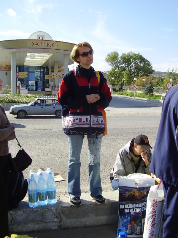 А вот фотки нашей "мамы". На первой она даёт указания, как залазить в маршрутку. На второй - как расстилать скатерть. Мамы все строгие! Ничего не поделаешь!