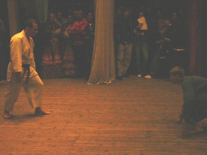 Ммм...по-моему термин "понимают"-это....ну....чегой-то не то.Скорее как пытаются понять.В смысле с какого боку.От мне жутко интересно, что новичок, типа меня, тока еще и о разнице в типах мышления востока-запада и проч. ничего не знающий думает в начале и конце тренеровки?о чем они молчат? Мдя......от я приблизительно об этом вчера думала.Тока, понятное дело, с другой стороны.....со стороны....ээээ...короче, когда на тебе пыталась чего-то сотворить, ну хоть чего-нибудь, а ты меня перед Sempai еще так развернул, чоб ему все мои мучения видны были. Ну и что мне делать?А?Я великолепно врубаюсь, что дергать каждый раз Sempai, или кого-нить из стариков, конежно можно попробовать, только это затормозит(ну, по крайней мере, у нас в сфере образования так) совершенствование тех, кто чего-то достиг. Я так один язык учила.Новые пришли-все на базу-алфавит и пр.и так 3 раза(за 2,5 года).я бросила в конце концов(ну, там я была в группе "стариков"). Я сейчас приблизительно в том же положении, что и Sempai - придет народ минут через 15-20, мне его надо научить мозгами пользоваться, а у них уровень настолько разный.....правда им еще и нафик это все не надо.