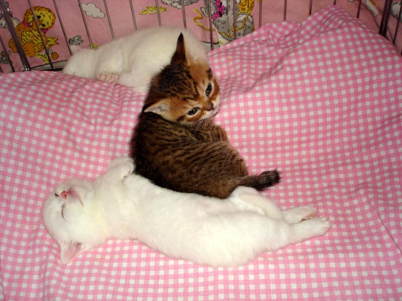 Еще немного фото... Вот Аська еще в бытности котенком, особенно мне нравится стоящая фигура у пальмы и "кошка и мышка" PS: животное, уснувшее у телефона и в руке - ее детеныш, ныне, Matilda' Great Bond