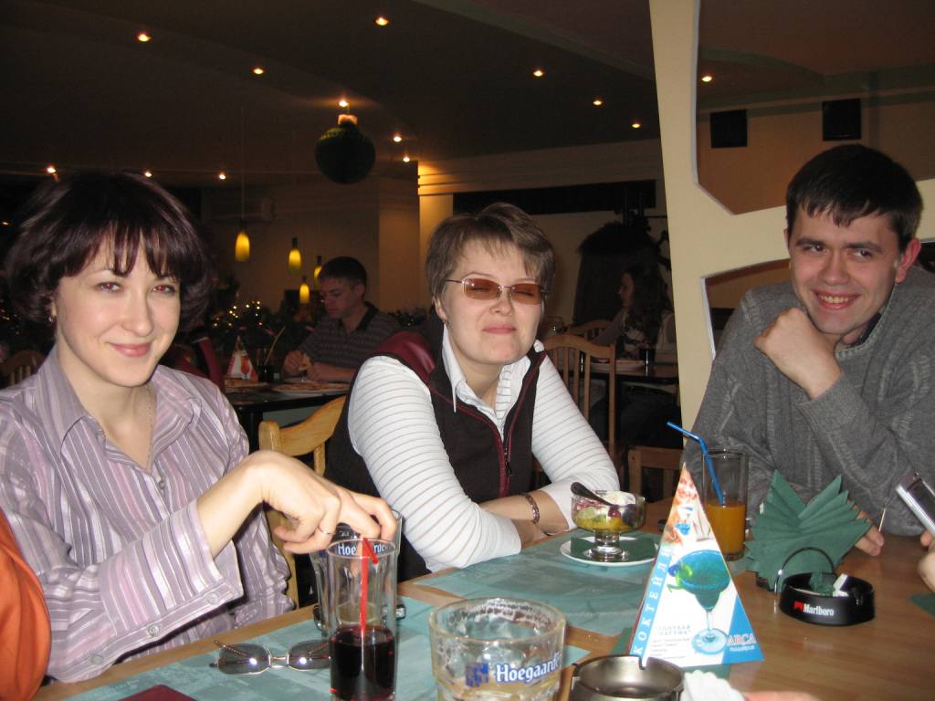 Хотелось бы сказать спасибо тем, кто организовал сию встречу, было приятно увидеть тех, кого уже знала, а также познакомиться с теми, кого до этого не встречала... могу со всей ответственностью заявить: "Оччень приятные люди!". Для тех, кто ушел рано, сообщаю: жаль, что вас не было с нами потом... после "Арки" ненадолго была "Пирамида", кто пил шампанское, а кто и в биллиард поигрывал, а потом была Рыба, т.е. "Пиранья", с вечеринкой а-ля СССР... было очень даже хорошо.... а, главное, весело! Еще раз большое спасибо! П.С. Помнится мне, у кого-то был фотоаппарат....