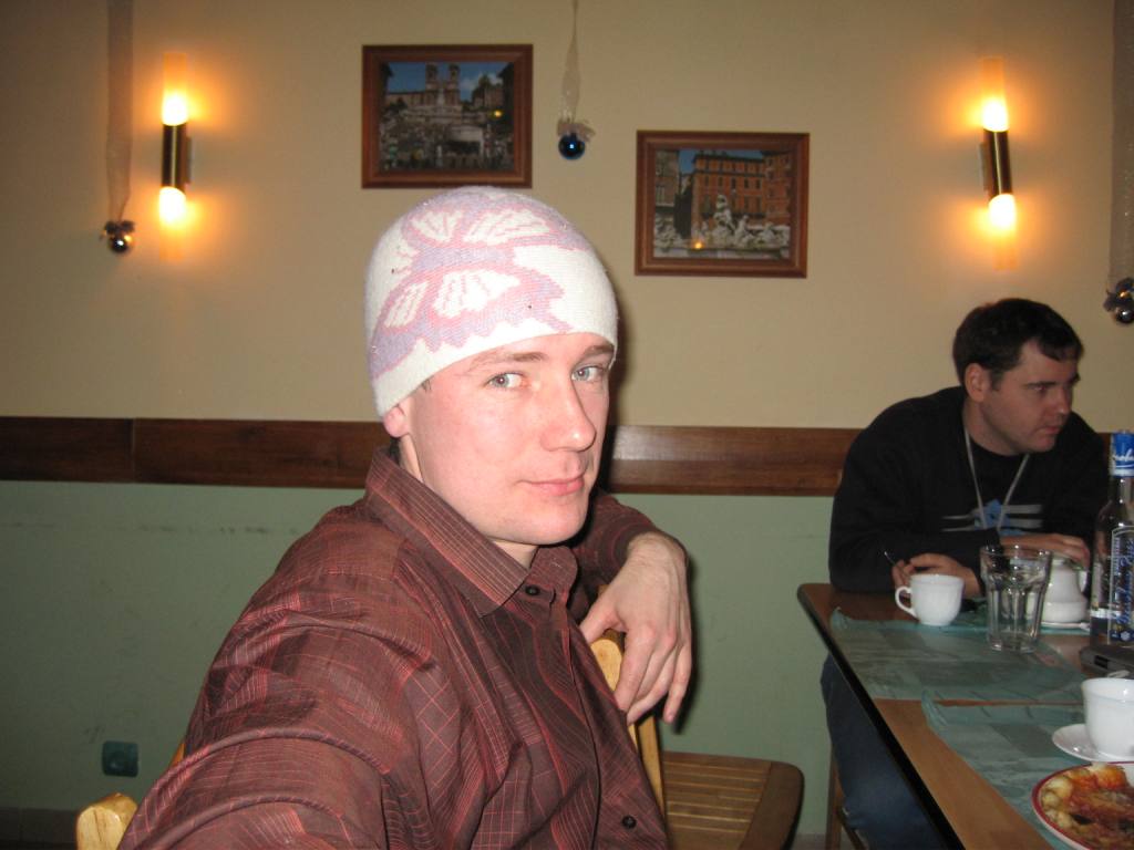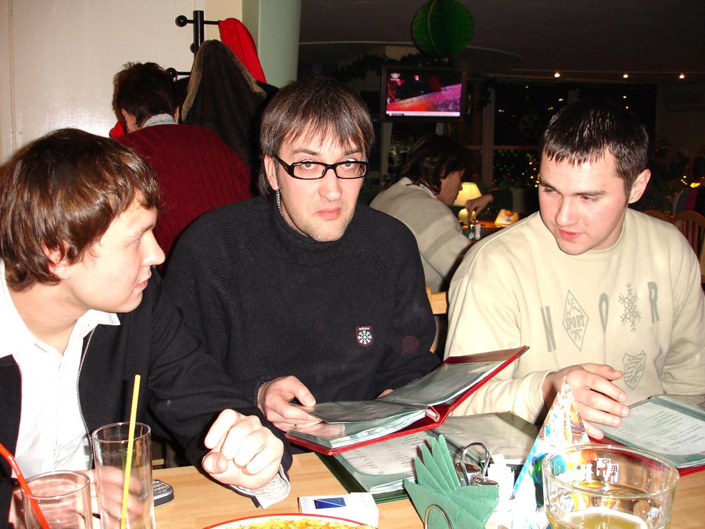 Было как всегда прикольно. Посидели там, сам и в Пиранью В Арке все голодные насытились свежеприготовленной пиццой (ох ну и долго же ее нынче производят!), наибольшее количество фотографирования пришлось именно на эту область времяпроведения, но не стоит так отчаиваться, ведь все еще впереди. Наевшись и наобщавщись народ стал медленно таять оставляя за собой пустые стулья и оплаченные счета... После некоторой зависшей паузы, остатки тусующихся переместили свои тела в ТРК Пирамида, который хоть расположен неподалеку. Там пройдя попутно все отделы поднялись на последний этаж и весело плюхнулись к столикам. Любители билльярда решили испытать свои силы, опять же попутно поглощая пиво и ведя светские беседы Ладно, придется порадовать вас и своей коллекцией различных фотографий... Сейчас продолжим описание действа.