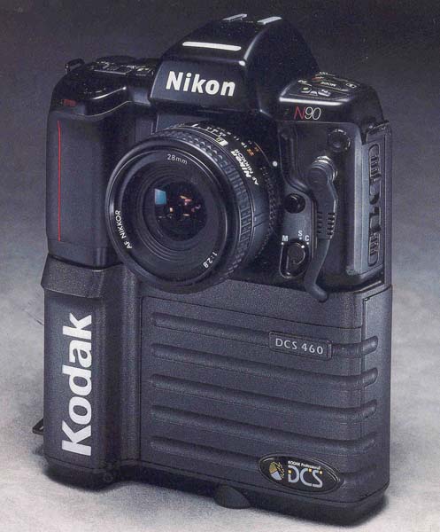 Что-то я сильно сомневаюсь, что смена логотипа им поможет. Kodak упустил приход цифры где-то в конце 90-х. Смотрите сами, что дома откопал. Это устройство Nikon N90 + Kodak DCS 460 было выпущено в середине 90-х. Если я правильно понял на обычную пленочную камеру цепляется цифровой задник. Разрешение - 6 мегапикселей (2048x3072), размер матрицы 18,4x27,6 мм. Соотношение фокусного расстояния 1:1,3. ISO 100, интерфейс SCSI, жесткий диск + карты PCMCIA-ATA. Все бы ничего, но цена этого девайса была в районе $ 30 000. Kodak делал подобные вещи еще для Canon, и кажется выпускались камеры без съемного блока - то есть полноценные цифрозеркалки. За основу брались проф. камеры Nikon и Canon. Но в конце 90-х Kodak заявляет, что цифра зашла в тупик и свернули свои разработки, попутно сократив массу народу на своих заводах. Кабы не на тот же период приходится анонсирование формата APS, который в принципе стал мертворожденным отпрыском от скрещивания обычной и цифровой фотографии.