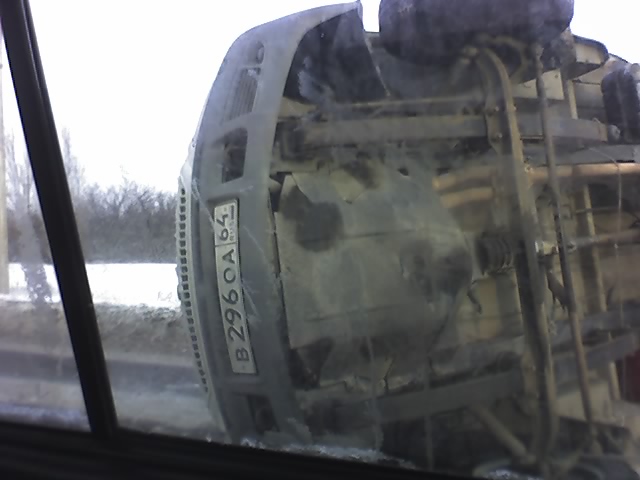 Ничего страшного там не было. Маршрутка столкнулась с газелью саратовской (которая на снимке). У маршрутки левое переднее крыло повреждено и капот. Газель грузовая перевернулась, но помята не сильно. Колбаски только из кузова высыпались Хотя увозили ее на эвакуаторе... По-моему, при таких повреждениях ничего серьезного быть не могло. Надеюсь, только ушибы и ссадины. В пробке минут 15 простояли.