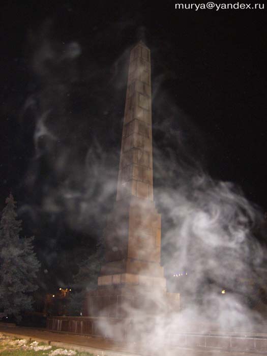 А вот вам необычный вид Волгограда. Нашел в архиве. Снято 2 с лишним года назад. Памятник на фото легко узнаваем, таких карточек сотни. Но вот «дым» откуда взялся? В момент съемки его не было! Я снимал «цифрой» Olympus E-20p, так что свалить на дефект пленки нельзя. Этот кадр был не первым в серии - до и после матрица камеры зафиксировала вполне нормальные снимки. Дым сигареты или пар изо рта? Но я не курил, и было не очень холодно - пар не виден. Рядом со мной никого не было в радиусе тридцати метров. Вдобавок пар или дым, выпущенный перед объективом, дал бы совершенно другой эффект: получился бы ровный туман, а здесь… «Дым» явно исходит от надгробной стелы. При этом как бы продолжает ее макушку. Если включить воображение, то на переднем плане можно рассмотреть очертания черепа, а справа от стелы (опять же при наличии фантазии) можно узреть что-то среднее между скелетом и призраком. На ночном небе при увеличении снимка видны непонятные объемные шарики. Вразумительных объяснений у меня нет до сих пор. p.s. Если у кого-то есть подобные призраки или что еще, можно будет выделить в отдельную тему.
