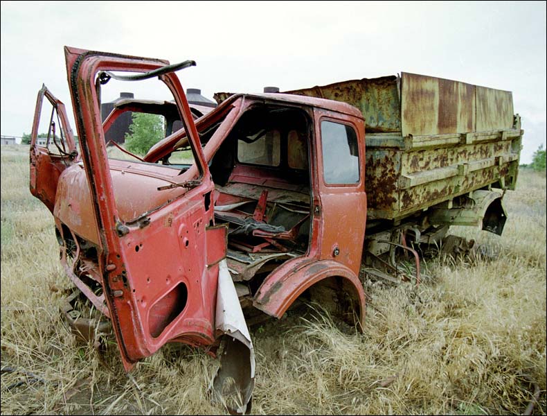 Нет Bob. Попробую обосновать. Цвет - он же не потому, что он просто есть - и всё тут. Цвет тоже должен либо нести идею, либо работать на идею снимка (ну, при наличии таковой ) Попробуй представить эту картинку цветной (она изначально ЧБ). Свет был довольно тусклый. Значит и цвета - не яркие и не насыщеные. Более того - само место довольно мусорное. Трава покрыта приличным слоем пыли. А значит - не зелёная уже. Рядом - большая серая ж/б плита. Да и сам автомобиль - не блоснежный. На заднем фоне - гаражи. Известно, что металлические гаражи у нас умудряются красить порой в безумные цвета (ездят же люди на сиреневых автомобилях!). То есть, эти гаражи были бы цветовыми пятнами, отвлекающими от основного объекта. Ещё ржавчина. На цвете это были бы бурые пятна - мало эстетичного. А так - элемент графики. То есть, в цвете это была бы довольно "грязноватая" блёклая картинка с разноцветными пятнами на фоне и на самом объекте. А в данном случае, ты видишь то, что я и хотел показать.