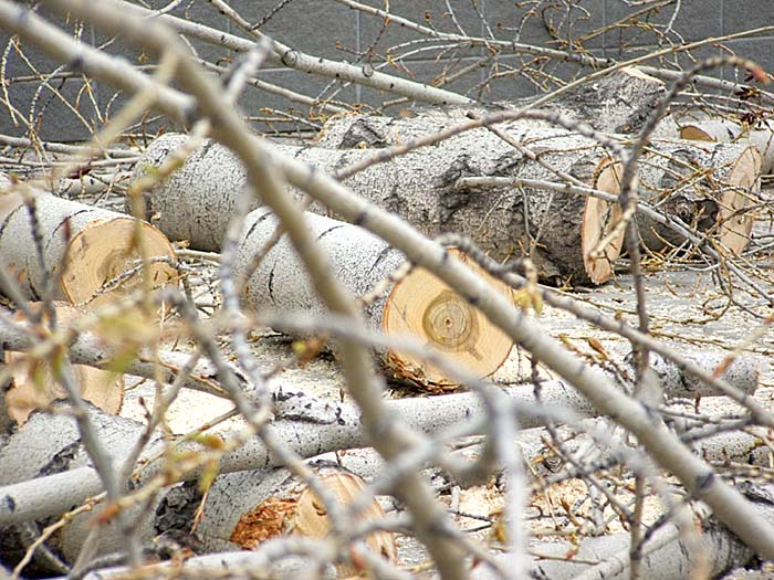 Что-то потянуло всех в ч/б... Может добавить чего-нить зеленого? Например "Зеленхоз"... Тут у нас приехали, пару деревцов подравняли...