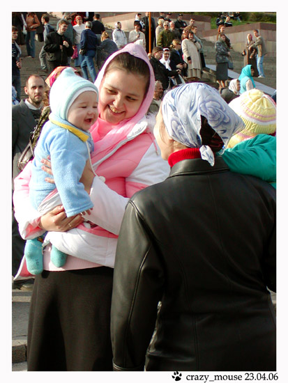 nibumbum: Да, Настя - тот ещё персонаж (впрочем, как и её мама). Но снимать её - терпение надо ацкое. Или ангельское. Упомянутый кадр снимался одним из последних во время прогулки и на десятикратном зуме, ибо ещё в самом её начале, увидев, что я расчехляю камеру, она демонстративно повернулась ко мне попой и пошла в другую часть сквера... Но зато если переупрямить Настю и заставить забыть о присутствии камеры, то из взглядов её можно целую фотоколлекцию составить. А на первой фотке мне мамин взгляд нравится. Прямо слышу ленино: "Так, девушка, и что ты этим хочешь сказать?!." Обожаю наблюдать за их диалогами и жалею, что не всегда есть возможность достать камеру и заснять трогательный момент выяснения отношений.