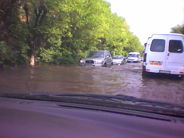повезло! а мы с подругами вчера прикольно искупались в дзержинском!!! ехали неизвестно сколько до ПХ на такси - все нормально, зато потом из ПХ решили дойти пешком(да там минуты 3 всего...) - насквозь промокли! по теме:я в шоке! вот это вам подвезло! насмотрелась фоток.. у нас конечно мокро, но не так!